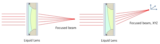Fast light beam focusing and tilting for XYZ control of the optical rays. |